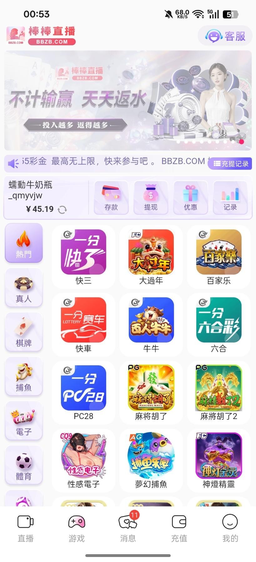 【棒棒直播】— 回访彩金